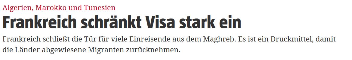 „Frankreich schliesst die Tür für viele ____ aus dem Magreb.“